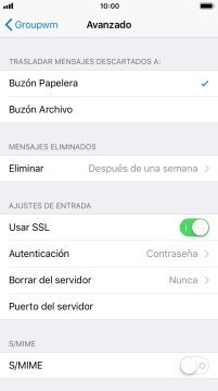 Pulsa el indicador junto a "Usar SSL" para desactivar la función.