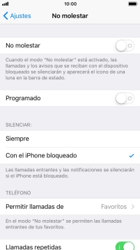 Pulsa Con el iPhone bloqueado si el teléfono solamente debe estar en modo silencioso cuando el bloqueo de pantalla está activado.