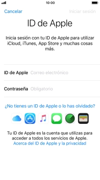 Si no tienes un ID de Apple, pulsa ¿No tienes un ID de Apple o lo has olvidado? y sigue las indicaciones de la pantalla para ver cómo crear un ID de Apple.