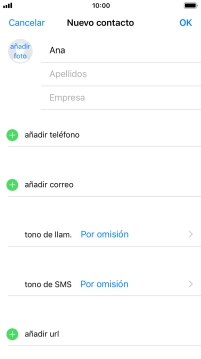 Sigue las indicaciones de la pantalla para añadir más información como, por ejemplo, la dirección de correo electrónico y el timbre de llamada personal.
