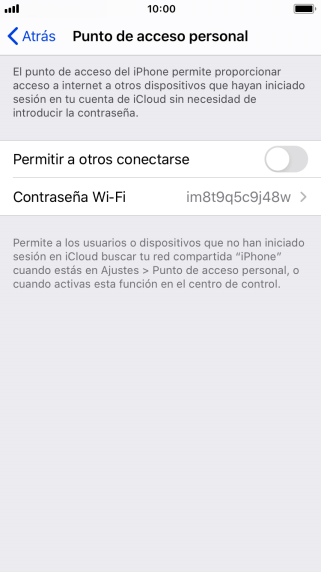Pulsa el indicador junto a "Permitir a otros conectarse" para activar la función.