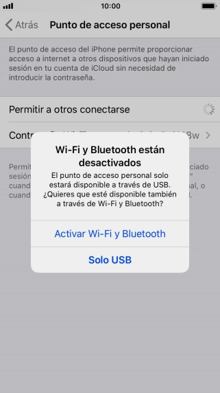 Si la función de wifi está activada, pulsa Solo Wi-Fi y USB.
