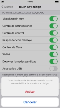 Pulsa Activar código e introduce un código de seguridad de libre elección dos veces seguidas.