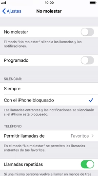 Pulsa Con el iPhone bloqueado si el teléfono solamente debe estar en modo silencioso cuando el bloqueo de pantalla está activado.
