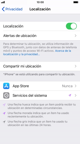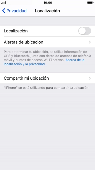 Pulsa el indicador junto a "Localización" para activar o desactivar la función.