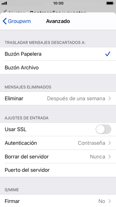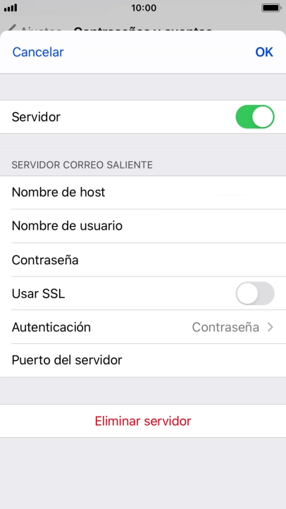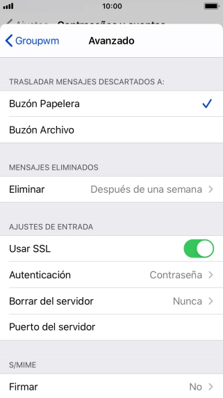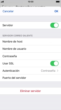 Pulsa el indicador junto a "Usar SSL" para desactivar la función.