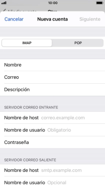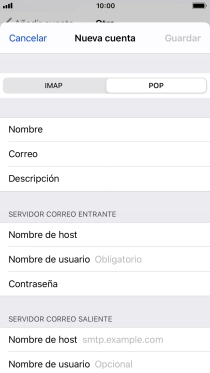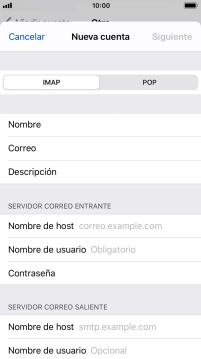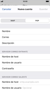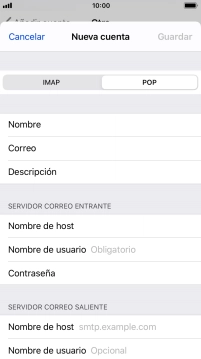 Pulsa Nombre de host e introduce el nombre del servidor de correo de entrada de tu proveedor de correo electrónico.