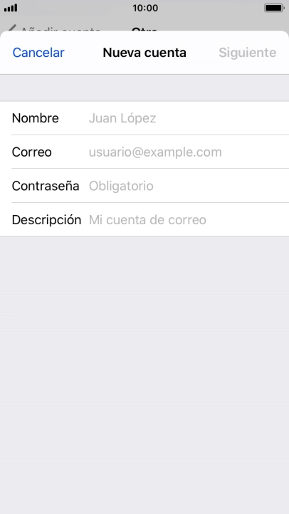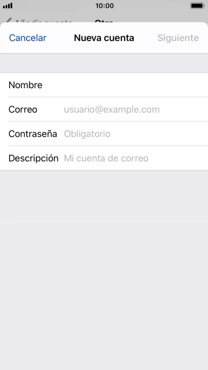 Pulsa Descripción e introduce el nombre de la cuenta de correo electrónico.