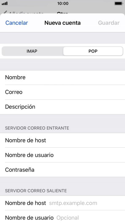Pulsa Nombre de host e introduce smtp.vodafone.es.