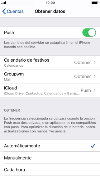 Pulsa el indicador junto a "Push" para activar o desactivar la función.