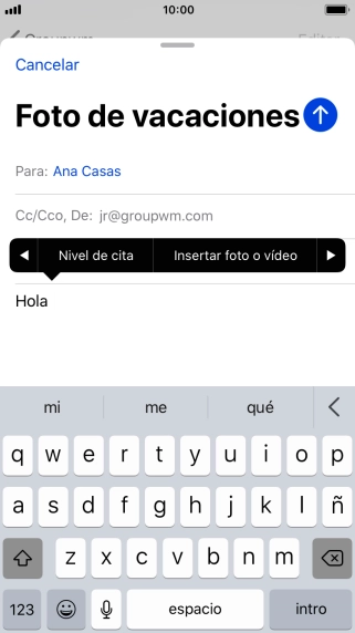 Pulsa en el campo de escritura y escribe el texto del correo electrónico.