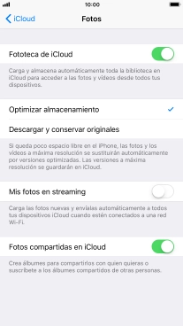 Pulsa el indicador junto a "Mis fotos en streaming" para activar o desactivar la función.