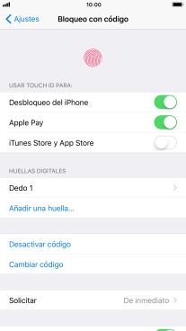 Puedes configurar el teléfono para que utilice tu huella digital como código de seguridad o para validar tus compras en iTunes y App Store. Para poder utilizar el sensor de identidad, tienes que activar el código de seguridad del teléfono.