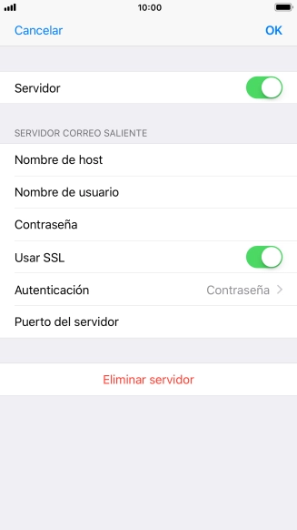 Pulsa el indicador junto a "Usar SSL" para desactivar la función.