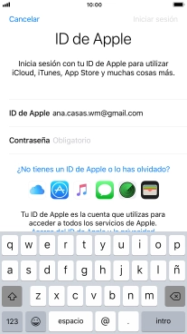 Si no tienes un ID de Apple, pulsa ¿No tienes un ID de Apple o lo has olvidado? y sigue las indicaciones de la pantalla para ver cómo crear un ID de Apple.