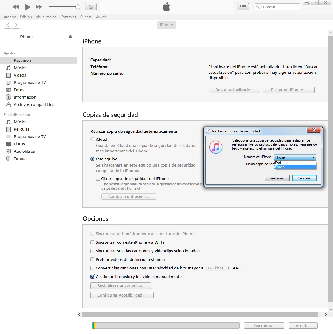 2. Restaura una copia de seguridad de iTunes