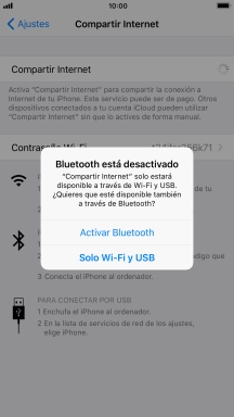 Pulsa el indicador junto a "Compartir Internet" para activar la función.