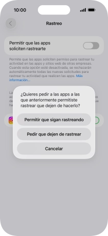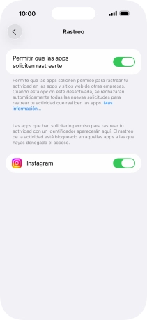Pulsa el indicador junto a "Permitir que las apps soliciten rastrearte" para activar o desactivar la función.