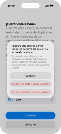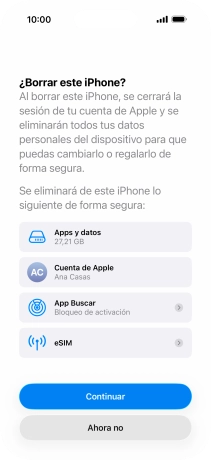 Introduce la contraseña de tu Cuenta de Apple y pulsa Desactivar. Espera unos instantes mientras el teléfono restablece la configuración predeterminada. Sigue las indicaciones de la pantalla para configurar el teléfono y dejarlo listo para su uso.
