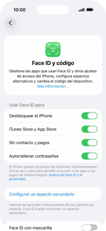 Puedes utilizar tu Face ID para desactivar el código de seguridad, acceder a tus apps y autorizar pagos.