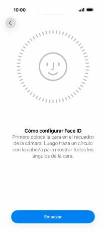 Pulsa Empezar y sigue las indicaciones de la pantalla para crear un código de seguridad con la función de reconocimiento facial (Face ID).