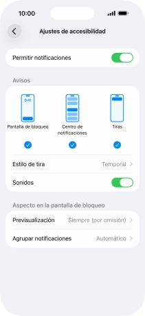 Para seleccionar la vista previa de las notificaciones cuando la pantalla esta desbloqueada, pulsa Si está desbloqueado.
