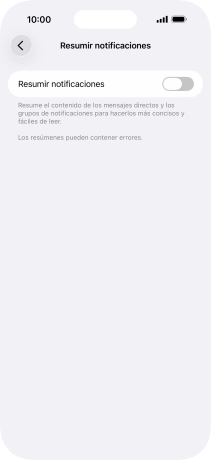 Pulsa el indicador junto a "Resumir notificaciones" para activar o desactivar la función.