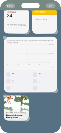 Desliza el dedo hacia arriba o hacia abajo por la pantalla para ver más widgets.