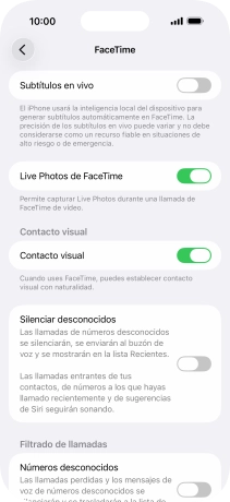 Pulsa el indicador junto a "Live Photos de FaceTime" para activar o desactivar la función.