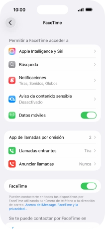 Pulsa el indicador junto a "FaceTime" para activar o desactivar la función.