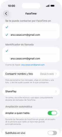 Pulsa el indicador junto a "SharePlay" para activar o desactivar la función.