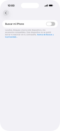 Pulsa el indicador junto a "Buscar mi iPhone" para activar la función.