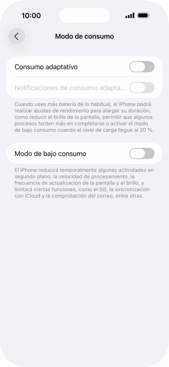 Pulsa el indicador junto a "Consumo adaptativo" para activar la función.