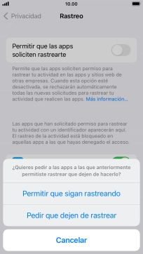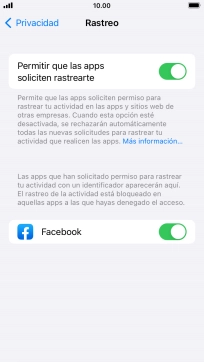 Pulsa el indicador junto a "Permitir que las apps soliciten rastrearte" para activar o desactivar la función.