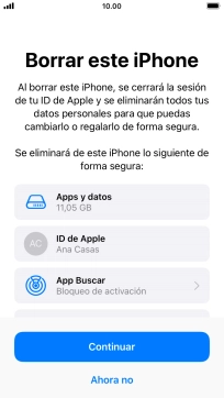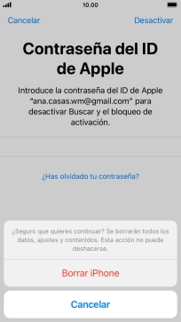Introduce la contraseña de tu ID de Apple y pulsa Borrar iPhone. Espera unos instantes mientras el teléfono restablece la configuración predeterminada. Sigue las indicaciones de la pantalla para configurar el teléfono y dejarlo listo para su uso.