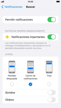 Pulsa el indicador junto a "Notificaciones importantes" para activar o desactivar la función.
