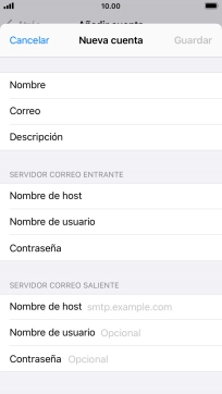 Pulsa Nombre de host e introduce el nombre del servidor de correo de entrada de tu proveedor de correo electrónico.