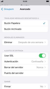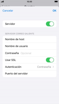 Pulsa el indicador junto a "Usar SSL" para desactivar la función.