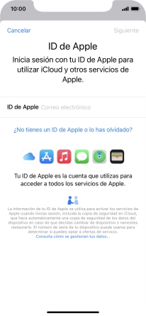 Si no tienes un ID de Apple, pulsa ¿No tienes un ID de Apple o lo has olvidado? y sigue las indicaciones de la pantalla para ver cómo crear un ID de Apple.