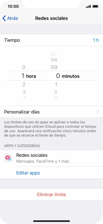 4. Selecciona el límite de tiempo para el uso de apps