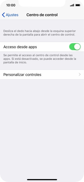 2. Activa o desactiva el Centro de control en las aplicaciones