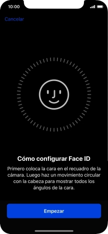 Pulsa Empezar y sigue las indicaciones de la pantalla para crear un código de seguridad del teléfono con la función de reconocimiento facial (Face ID).