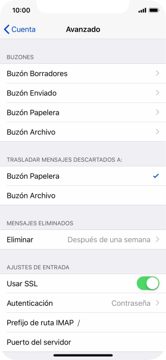 Pulsa el indicador junto a "Usar SSL" para desactivar la función.