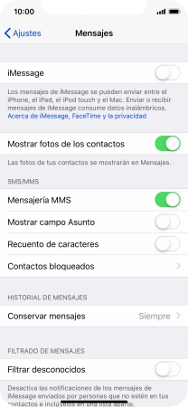 Si activas la función, los iMessages se enviarán como mensajes cortos normales en caso de que este servicio no esté disponible.