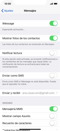 Pulsa el indicador junto a "iMessage" para activar la función.