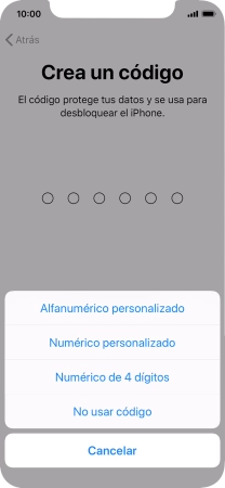 Sigue las indicaciones de la pantalla para activar el uso del código de seguridad o pulsa No usar código.