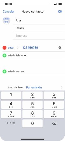 Sigue las indicaciones de la pantalla para añadir más información como, por ejemplo, la dirección de correo electrónico y el timbre de llamada personal.
