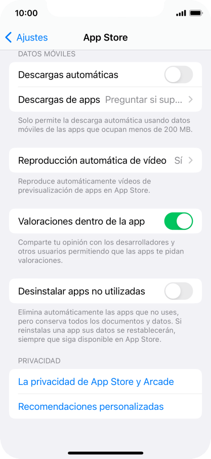Puedes configurar el teléfono para que elimine de forma automática las apps que llevas sin utilizar mucho tiempo para poder liberar espacio en la memoria del teléfono. Todos los ajustes y los datos de las apps se guardan y se restauran cuando vuelves a instalar la app de App Store.