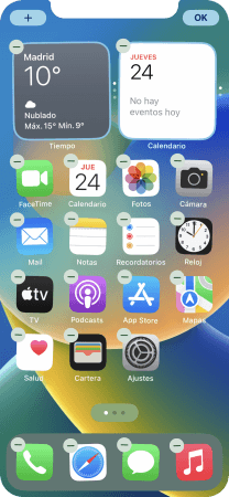 Pulsa una página cualquiera de la pantalla de inicio durante unos instantes hasta que los iconos empiecen a moverse.