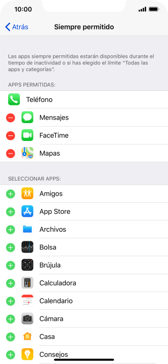 Bajo el punto de menú Tiempo de inactividad solamente estarán disponibles las llamadas y las apps que hayas permitido.
